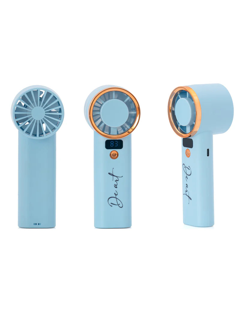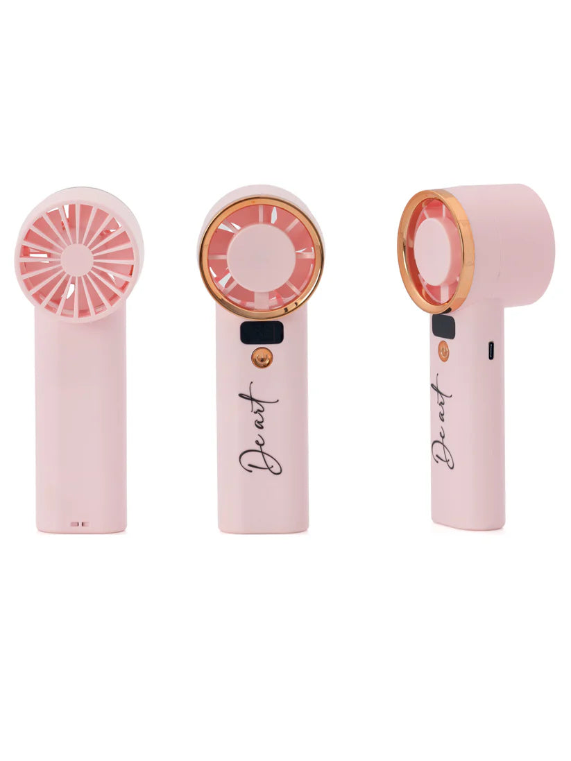 Built with a powerful yet quiet motor, this compact fan delivers refreshing airflow without noise. The lightweight body and modern script branding make it perfect to carry in your handbag, makeup kit, or on-the-go.